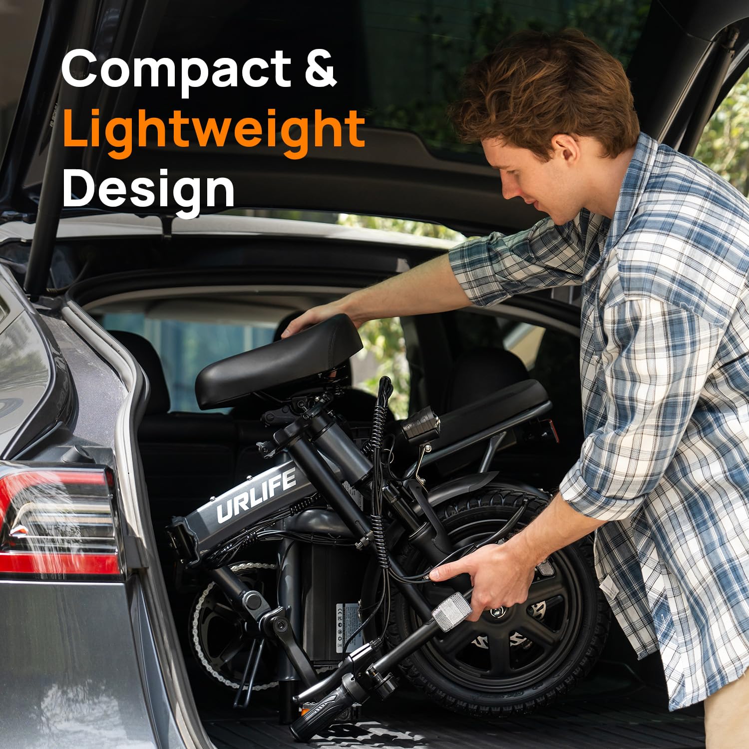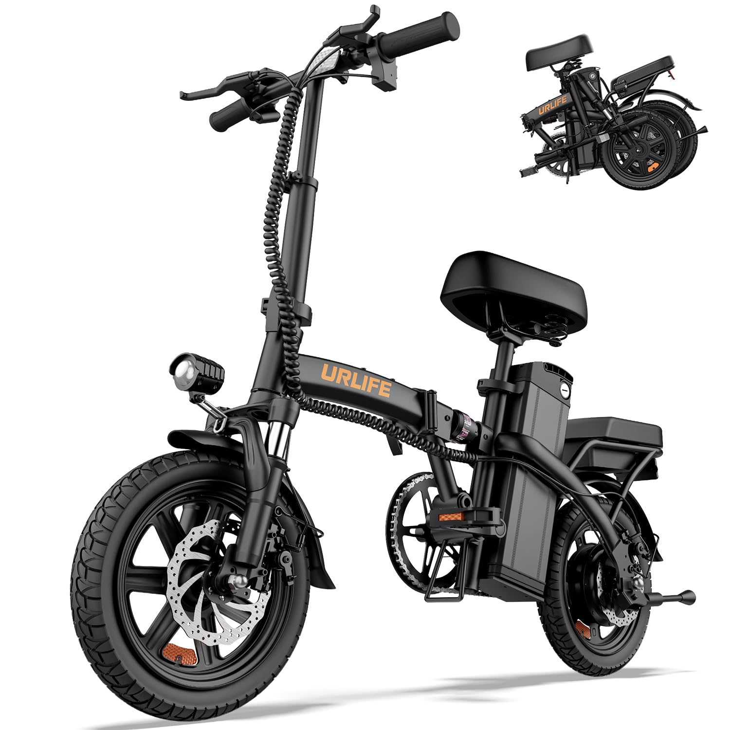 URLIFE Electric Bike for Adults, 14" Folding Electric Bike, 500W Peak Motor, 48V 375Wh Removable Battery, 15.5MPH, 40 Miles Long Range, E Bikes for Adults and Teens, UL 2849 Certification (Dark Black)